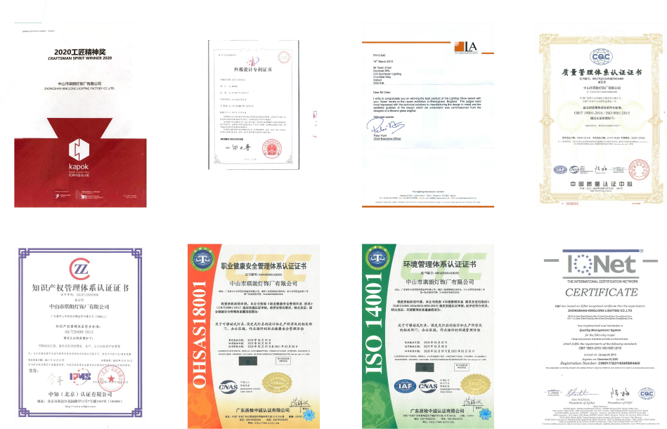 琪朗秉承原创精神,从经 典到时尚灯饰艺术,至今 开发超过600项的全球专利, 累计荣获国内外800多项设 计大奖,产品通过欧盟 RoHS认证的欧洲CE认证与 德国认证、中国3C、CQC认 证,成品出货合格率高达 99%,产品不断迭代,使琪 朗脱颖而出,成为众多消 费者心中的首选品牌。